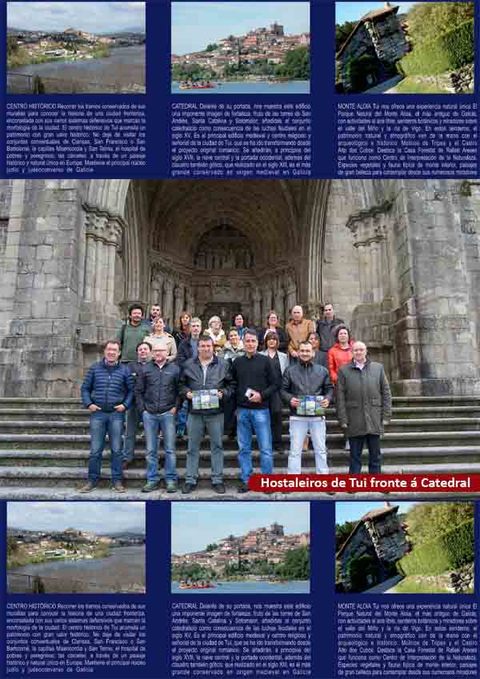 Dende o concello búscase involucrar ao sector privado na promoción da cidade, xa que, segundo apuntou o alcalde de Tui, Enrique Cabaleiro, "o turismo é un dos eixos fundamentais para o desenvolvemento económico e social e a estratexia para poñelo en valor debe ser común entre institucións públicas e sector privado" engadindo que é preciso o esforzo de todos para prestar servizos de calidade. Nesta estratexia o folleto inclúe tamén as principais actividades de turismo activo ofrecidas por empresas privadas como sendeirismo, piragüismo, rafting, rutas en bicicleta, paseos a cabalo..., así como a relación de hoteis, albergues e casas de turismo rural. Outros dos apartados da información ofrecida refírese ao conxunto histórico, á Catedral de Tui e ao Parque Natural do Monte Aloia.