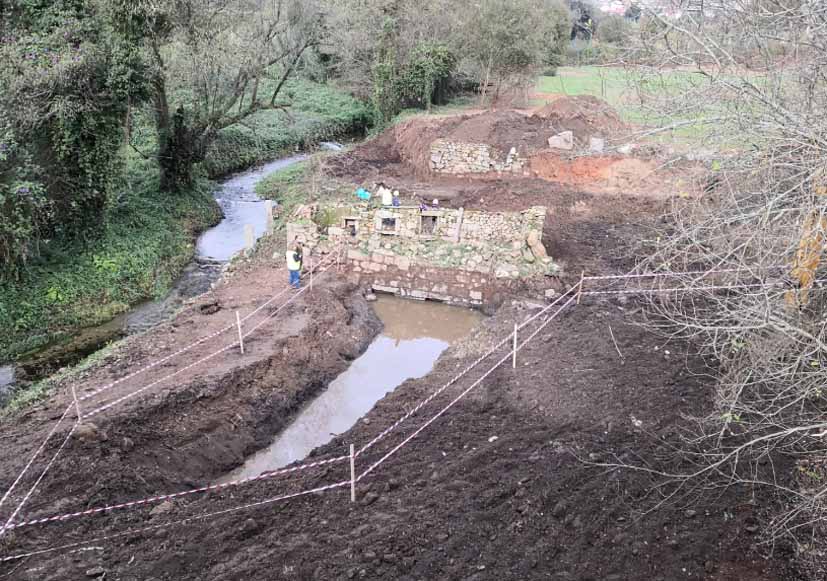 As actuacións, supervisadas e dirixidas por un equipo de arqueólogos, están resultando moi proveitosas xa que están a recuperar diferentes elementos que permanecían soterrados. O máis destacable, ata o momento, é a gran canalización na saída de auga do muíño que se prolonga ao longo de toda a parcela en paralelo ao río. Esta construción non estaba documentada e foi un dos achados deste traballo arqueolóxico.