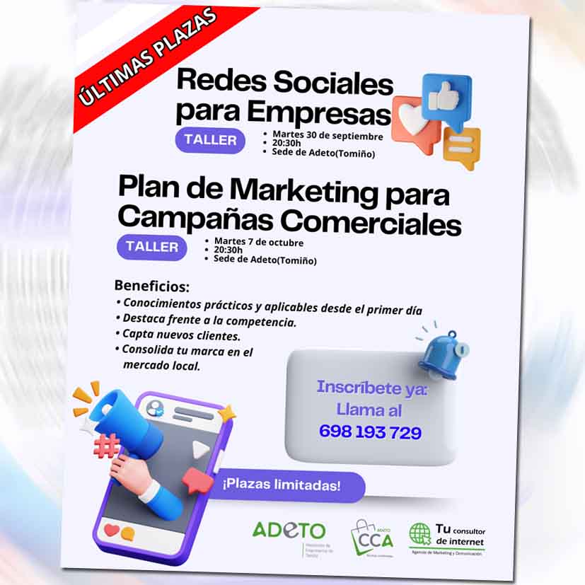 Ambas formaciones, de hora y media de duración, estarán impartidas por Jorge Alonso Daldea, especialista en marketing digital de la agencia Tu Consultor de Internet. Los cursos están abiertos tanto a socios de ADETO como a empresas no asociadas, y cuentan con plazas limitadas, asignadas por orden de inscripción.