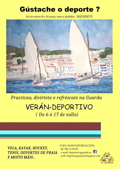 O "Verán-Deportivo" ofrece actividades moi diversas en horario de mañá de 9,30 a 13,30 horas. Entre os deportes que os rapaces e rapazas poderán practicar encóntrase a vela, kayac, piscina, remo, hockey sobre patíns e outros deportes na praia.