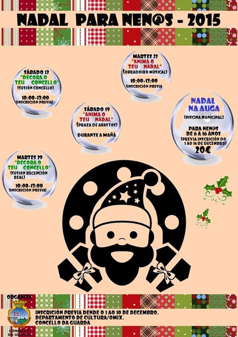 O martes 1 de decembro, ábrese o prazo de inscrición para participar nos diferentes obradoiros para nenos organizados polo Concello da Guarda e para a actividade "Nadal na auga".