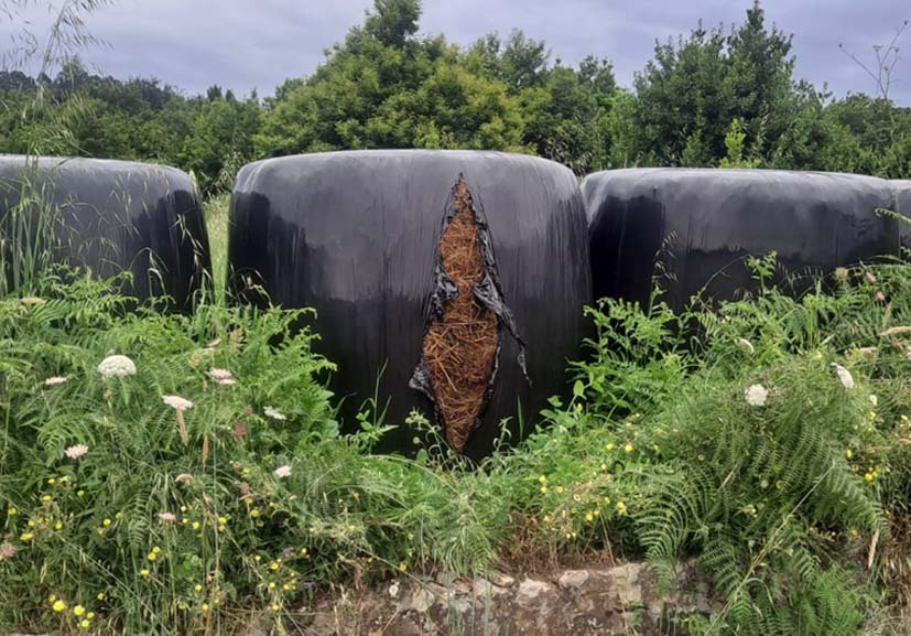Desde hace algunos días, y en varias localizaciones distintas, han aparecido varias de estas balas de paja rotas o rajadas, lo que hace que las mismas queden inservibles y no se puedan almacenar para el próximo invierno.