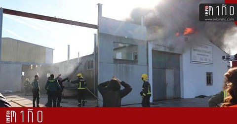 Un incendio devora parte de una empresa de suministros de ferreteria en A Guarda
