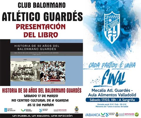 Este sábado el Club Balonmán Atlético Guardés vivirá una jornada muy especial. El Centro Cultural de A Guarda acogerá a partir de las 12 de la mañana la presentación de "Historia de 50 años del Balonmano Guardés - Del patio de los Somascos a mejor equipo de España (1967-2017)", un libro elaborado por Paco Valderrama y Celso Rodríguez y que recoge los hechos más destacados de la vida de la entidad del Baixo Miño.