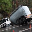 UNA SALIDA DE VÍA DE UN CAMIÓN ARTICULADO DE CEMENTO OBLIGA A A CORTAR UN CARRIL DE LA PO-552 A SU PASO POR AMORÍN EN TOMIÑO