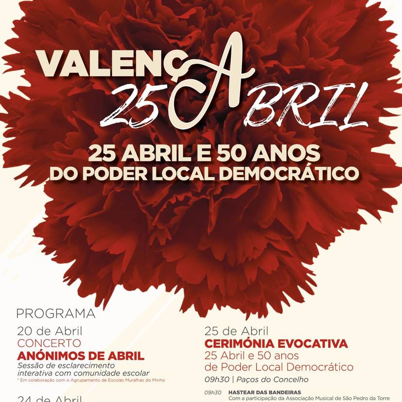Para conmemorar el 52.º aniversario de la Revolución de los Claveles, Valença cuenta con un amplio programa de comunión de libertad y democracia en torno a la inscripción por la liberación del comercio contra el poder local democrático del 25 de abril.