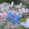 Desta volta, restos de cascallos de obra, botellas de cristal, periódicos, caixas e plásticos, invaden este espazo ante as sinais existentes que alertan sobre prohibición de verter entullos e basuras neste lugar.