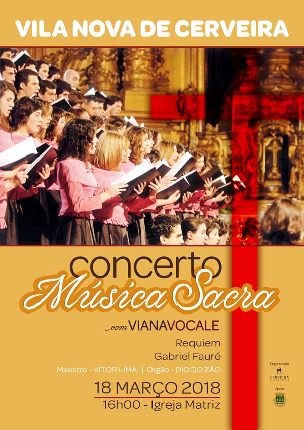 O Concerto de Música Sacra pelo VianaVocale está agendado para domingo, 18 de março, às 16h00, na Igreja Matriz de Vila Nova de Cerveira, com entrada livre.