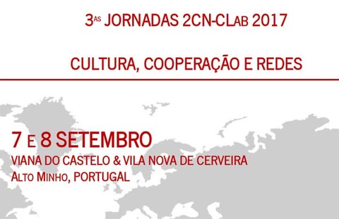 Vila Nova de Cerveira e Viana do Castelo vão acolher as 3.as Jornadas Cultural Cooperation Networks - Creative Laboratory (2CN-CLAB) "Cultura, Cooperação e Redes", nos próximos dias 7 e 8 de setembro. O 2CN-CLAB 2017 está a ser promovido desde janeiro de 2016 em Portugal, Espanha e no Brasil, no âmbito do projeto "Redes de Cooperação Cultural Transnacionais: Portugal Europeu, Lusófono e Ibero-Americano", com o apoio da Fundação para a Ciência e a Tecnologia.