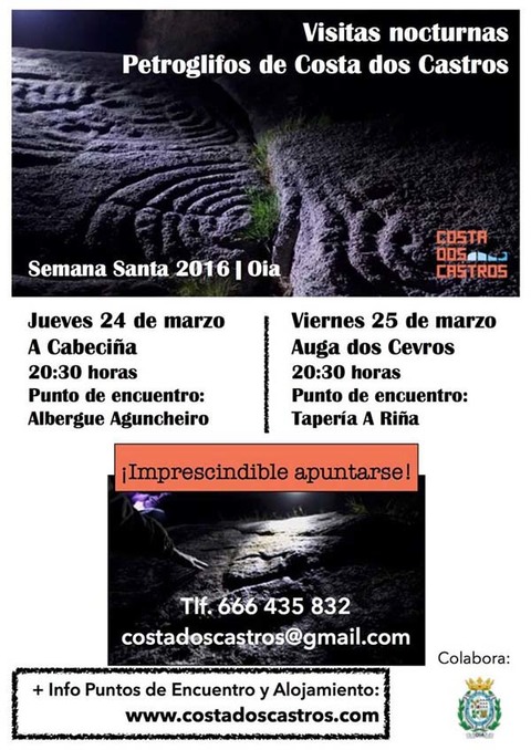 Este xoves e venres de Semana Santa ofrecemos dúas visitas nocturnas aos petróglifos de Costa dos Castros. Apúntate...as prazas son limitadas! Máis info no cartel.