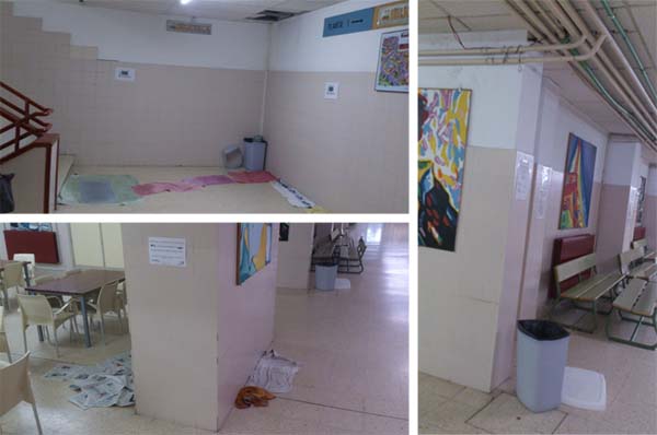 Coa volta das choivas as pingueiras regresaron á Sangriña, periódicos e papéis no chan tentan absorver parte da auga que se filtra no interior do centro.