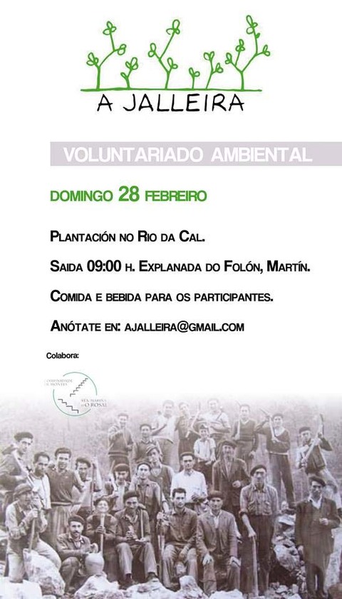 VOLUNTARIADO AMBIENTAL ESTE DOMINGO CON A JALLEIRA NO ROSAL
