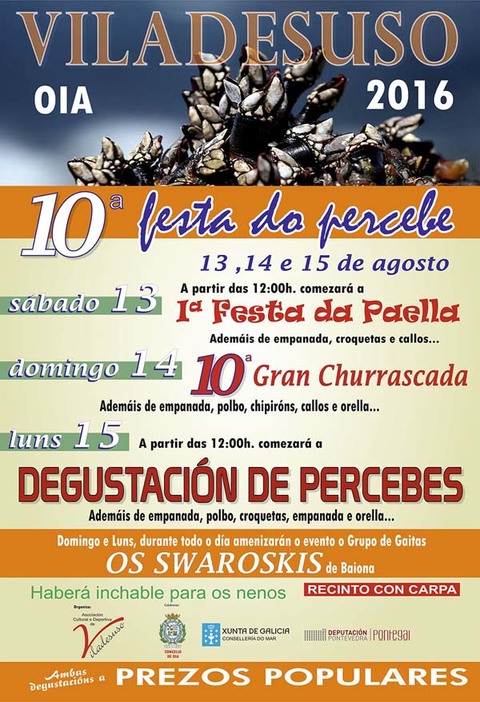 X Festa do Percebe do 13 ó 15 de agosto en Viladesuso - Oia