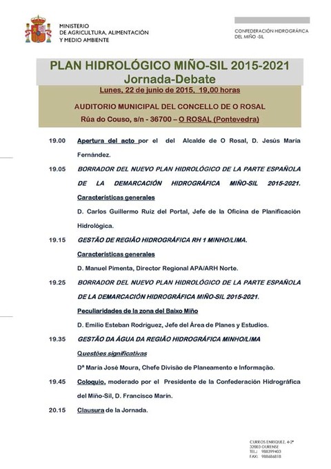 XORNADA DEBATE PLAN HIDROLÓXICO MIÑO-SL O LUNS 22 NO ROSAL