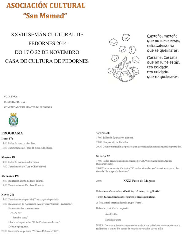 XXVIII SEMANA CULTURAL DE PEDORNES DO 17 Ó 22 DE NOVEMBRO EN OIA
