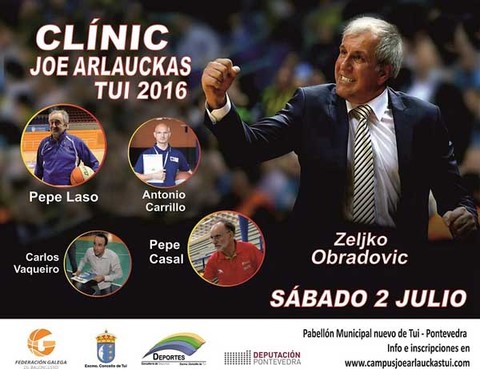 Zeljko Obradovic porá o punto final a un Clínic de baloncesto que comezará ás 09:30 h do sábado 2 de xullo cunha poñencia de Carlos Vaqueiro, actual responsable da canteira do FC Porto. De seguido intervirá Antonio Carrillo, un dos mellores adestradores de minibasket de España e autor tamén de numerosos artigos e libros de referencia no mundo do basket; a última charla da mañá correrá a cargo de Pepe Laso, técnico moi recoñecido no baloncesto nacional dada a súa habilidade na formación de adestradores e que, entre outros equipos, dirixiu o Tau Cerámica, Fórum Valladolid e CAI Zaragoza.